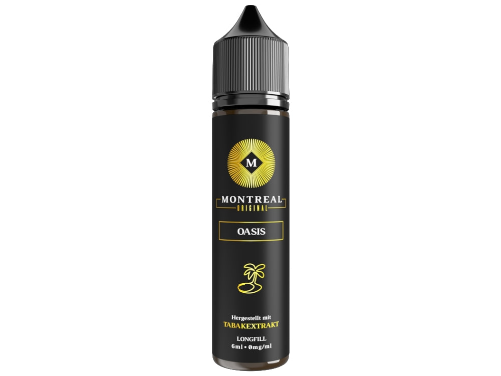 Sie erhalten eine Flasche mit 6 ml Montreal Original "Oasis" Longfill-Aroma in einer 60 ml Braunglas-Flasche.