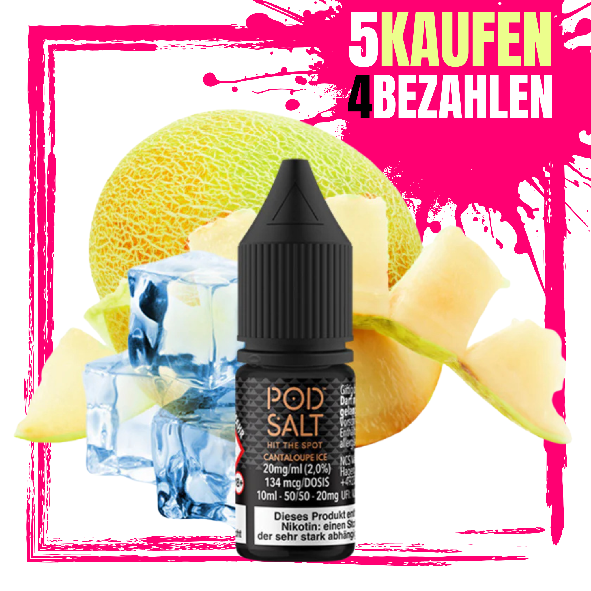 Das Pod Salt Core – Cantaloupe Ice Nikotinsalz Liquid bringt den süßlich-frischen Geschmack saftiger Honigmelone (Cantaloupe) mit einer kräftigen Eisnote zusammen. Die natürliche, milde Süße der Melone wird durch das Cooling perfekt ergänzt und sorgt für ein angenehm erfrischendes Dampferlebnis, das sommerlich, leicht und zugleich intensiv wirkt.
