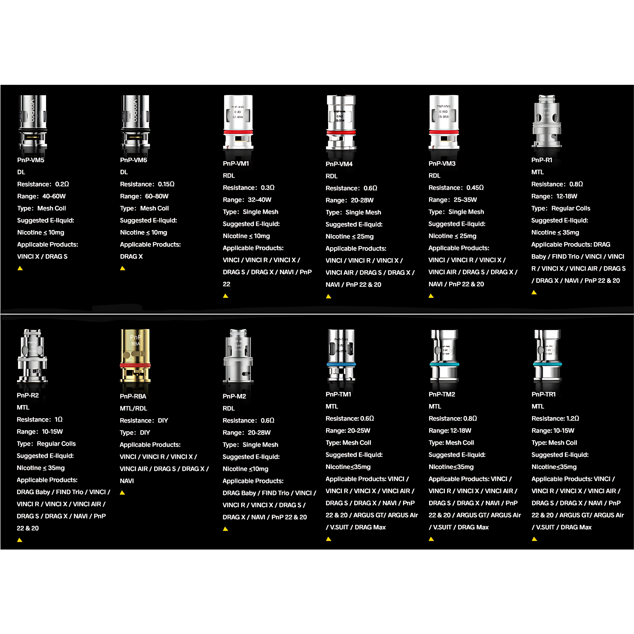 5 × Voopoo PnP Series Coils (je nach gewählter Variante)