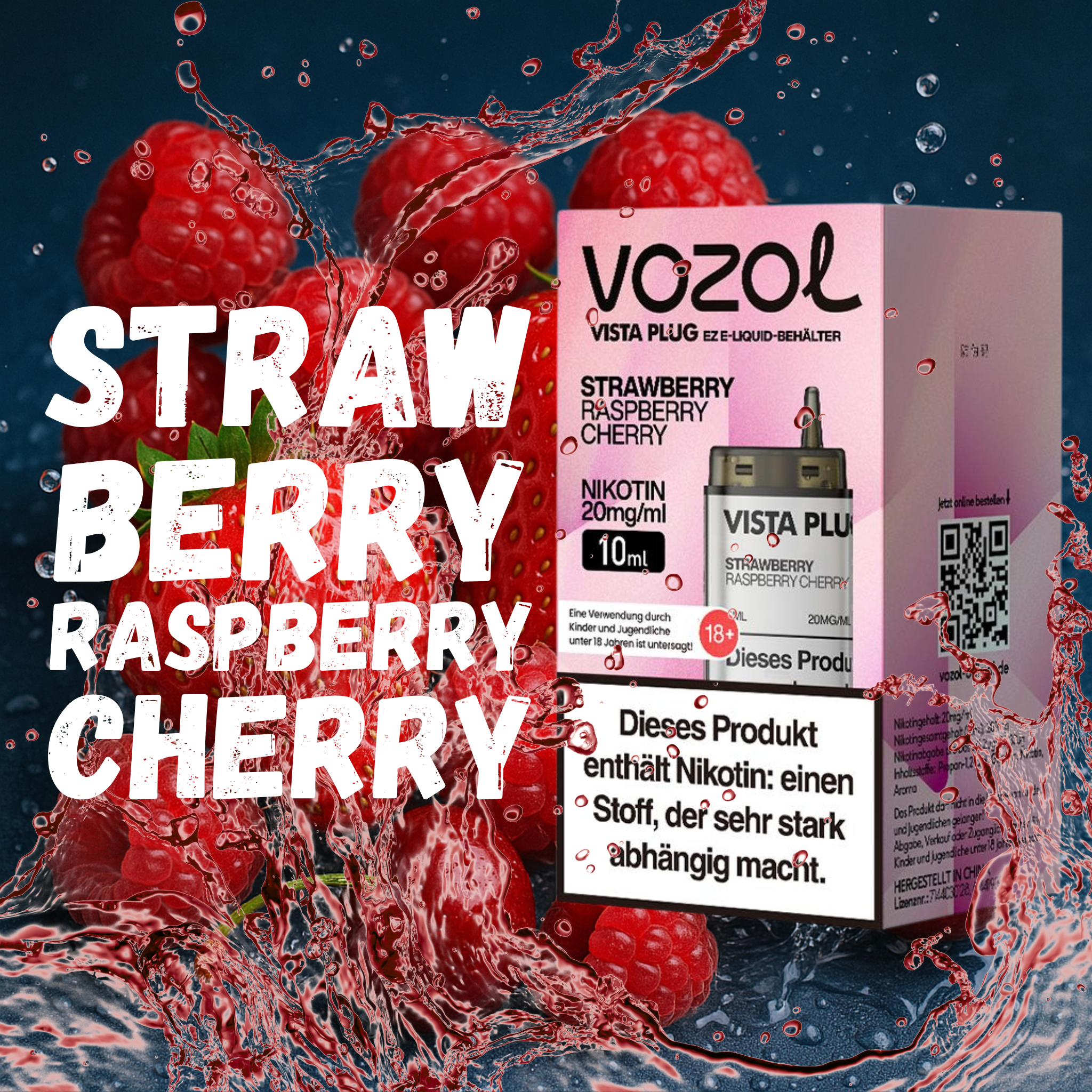 Der Vozol Vista Plug EZ Pod – Strawberry Raspberry Cherry bietet ein intensives, harmonisches Geschmackserlebnis aus drei fruchtigen Favoriten: süße Erdbeere, saftige Himbeere und aromatische Kirsche. Diese Kombination sorgt für eine perfekte Balance zwischen Süße, Fruchtigkeit und einer dezent säuerlichen Note – ein echtes Highlight für Beerenliebhaber. Das moderne Hybrid-System kombiniert einen 2 ml Leerpod mit einem integrierten 10 ml Nachfüllcontainer und ermöglicht damit bis zu 15.000 Züge ohne Nachfüllen.